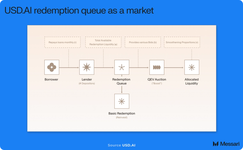 Infrastructure-backed lending inherently creates a structural liquidity mismatch. Underlying loans amortize over multi-year time horizons, whereas capital suppliers might search redemption sooner. USD.AI addresses this by queue-based redemptions for sUSDai. When liquidity is constrained, Queue Extractable Worth (QEV) costs redemption precedence inside the queue somewhat than counting on pressured asset gross sales or mounted liquidity buffers.