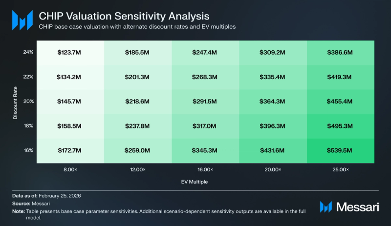 This construction preserves rigor beneath uncertainty. It avoids imposing money circulate rights that aren’t mechanically encoded but, whereas nonetheless capturing the 2 credible pathways by which CHIP may accrue worth if the protocol implements the mechanisms it has indicated publicly.