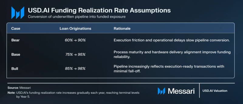 As a result of protocol economics are pushed by funded quantity somewhat than signed pipeline, persistent delays would suppress charge era, publicity development, and web curiosity earnings. Upside eventualities are extremely delicate to funding realization.
