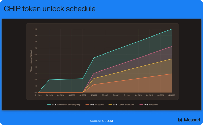 CHIP is the governance and utility token of the USD.AI protocol. It governs protocol requirements, threat parameters, charge surfaces and charge routing, rate of interest controls, and capital coverage. Whereas protocol charges could also be directed towards buybacks or staking rewards, there’s presently not a compulsory or mechanically enforced declare on protocol money flows.