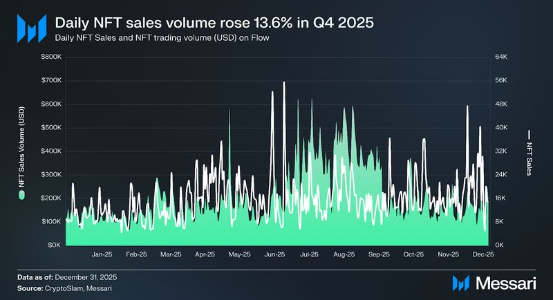 The NFT ecosystem on Circulation is essentially the most lively sector on the community. An attention-grabbing development value noting in This fall was the continued divergence between NFT gross sales and USD quantity metrics. Whereas USD-denominated quantity elevated solely 13.6% to $197,020, NFT gross sales declined by 53.4% QoQ to 13,720, as focused occasions drove a major enhance in onchain exercise. The divergence in This fall’25 between rising USD quantity and falling gross sales counts reversed the sample seen in Q3. NBA High Shot’s shift towards scarcity-driven collectibles, with decrease mint counts and premium autograph and signature tiers, lifted the typical value per sale. NFL All Day equally launched extra autographed collectibles, that includes verified digital signatures from stars like Cam Ward and Travis Hunter, which command increased value factors than normal spotlight clips. In the meantime, Disney Pinnacle’s This fall releases additionally shifted towards limited-edition units slightly than the high-frequency market buying and selling occasions that characterised Q3’25. The web impact was fewer particular person gross sales at increased common values, in keeping with a collector base keen to pay extra per merchandise as platforms shifted from volume-driven engagement to scarcity-based drops.