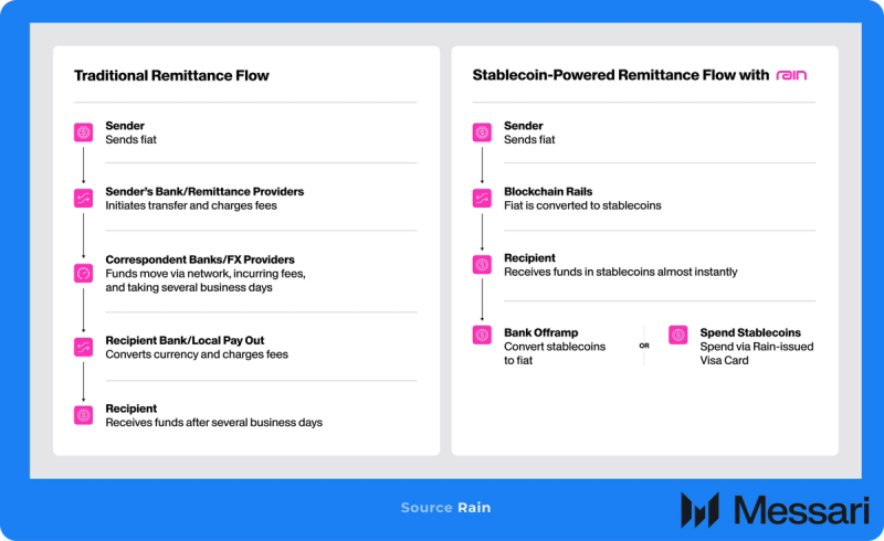 Rain is a stablecoin-powered funds platform designed to bridge the hole between digital belongings and conventional commerce. As a Visa Principal Member, Rain permits companies to launch branded card applications accepted at greater than 150 million retailers throughout over 150 international locations. Rain settles straight with Visa 12 months a yr, bypassing banking hours and permitting for real-time clearing of tokenized credit score receivables. This supplies an “invisible” funds layer that permits neobanks and platforms to supply international playing cards in a matter of weeks through a single API.