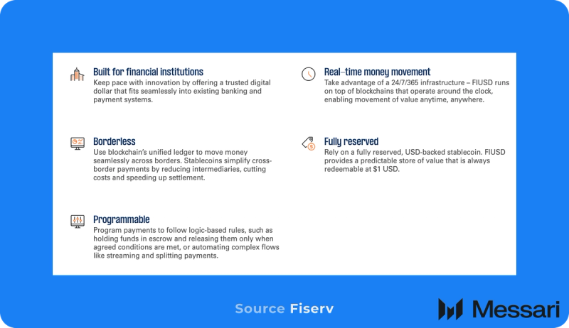 - Fiserv, one of many world’s largest financial institution processors and service provider acquirers, is issuing FIUSD on Solana, a bank-centric stablecoin. Fiserv introduced the launch of a digital asset platform with FIUSD, designed for its shoppers spanning 10,000 monetary establishments, in addition to its service provider community