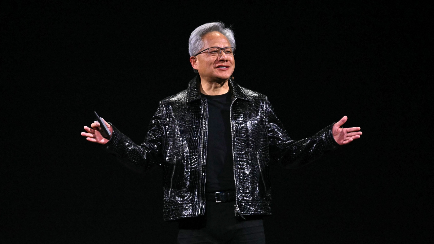 Nvidia CEO Jensen Huang delivers a keynote address at the Consumer Electronics Show (CES) in Las Vegas in January.