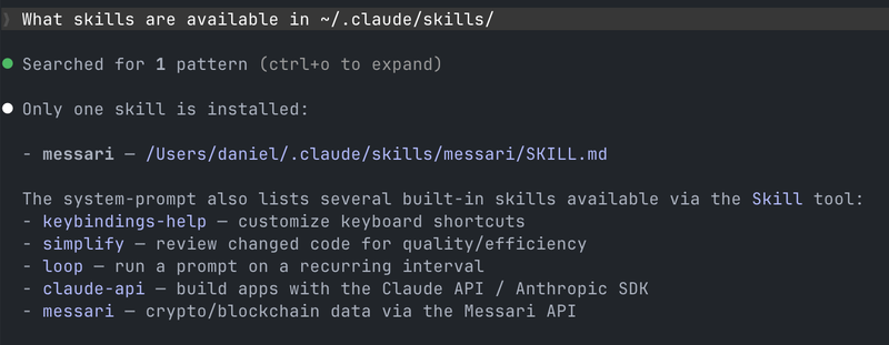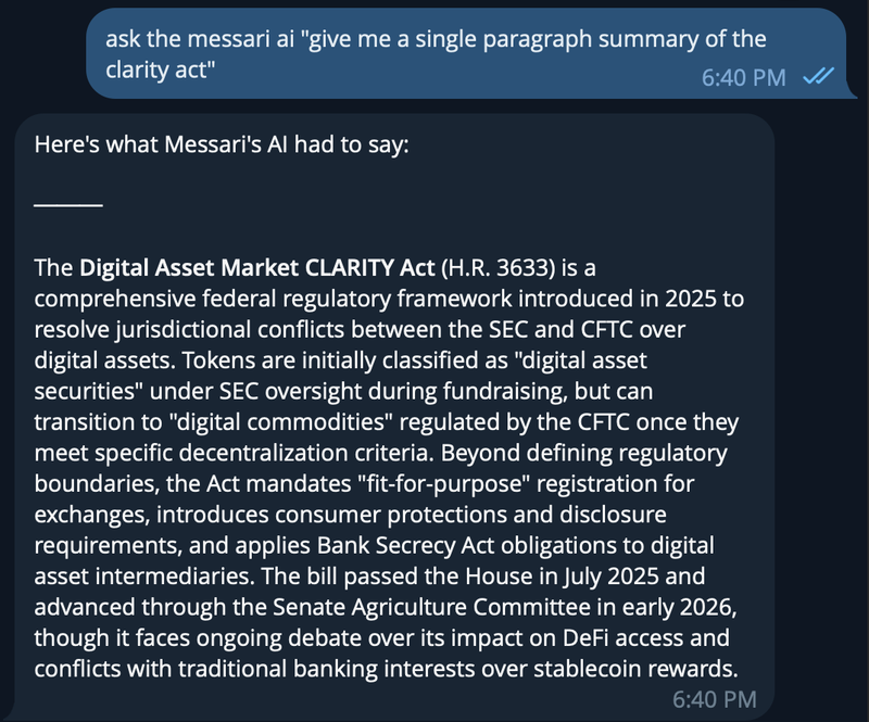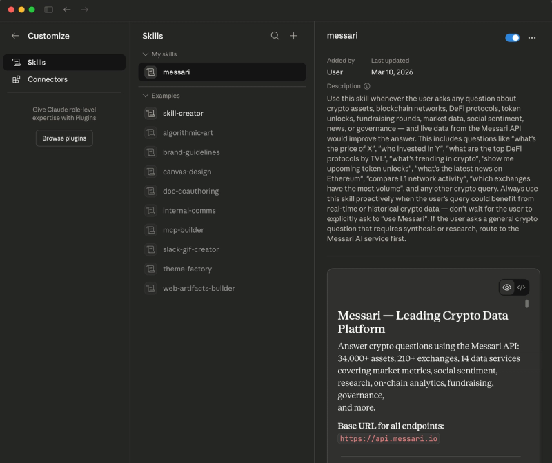 And also you’re executed! Now you can ask Messari something about crypto instantly from Claude