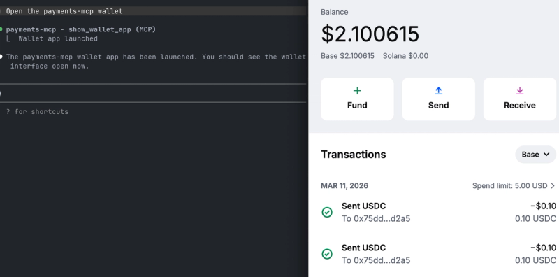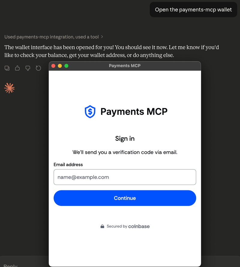 The quickest solution to get began with out managing personal keys is by leveraging Coinbase’s Funds MCP. This offers you simple hosted pockets authenticated together with your Coinbase account. Funds MCP offers Claude (and different MCP-compatible brokers) a pockets and the power to find and pay for x402 companies autonomously. Authenticate together with your e-mail, fund the embedded pockets with USDC on Base via Coinbase Onramp, and also you’re dwell. Your agent can now uncover x402 endpoints, consider pricing, make funds, and retrieve information — all with out you lifting a finger after the preliminary setup.