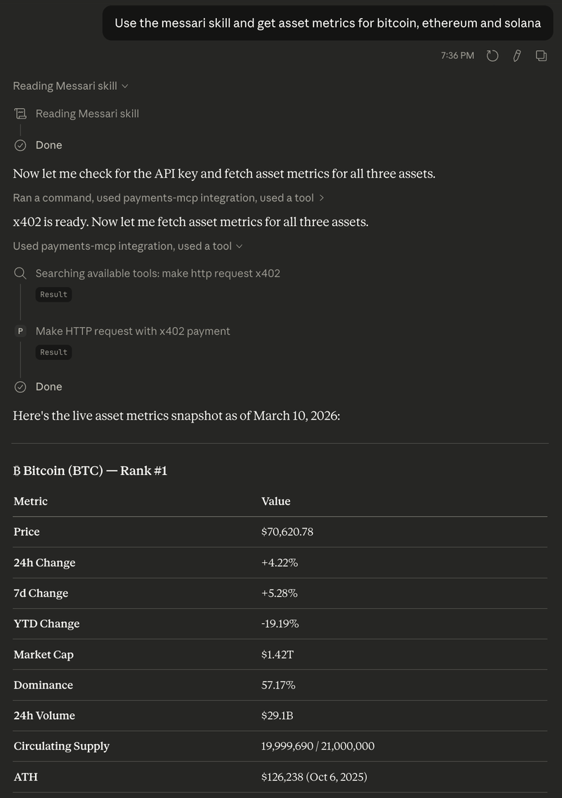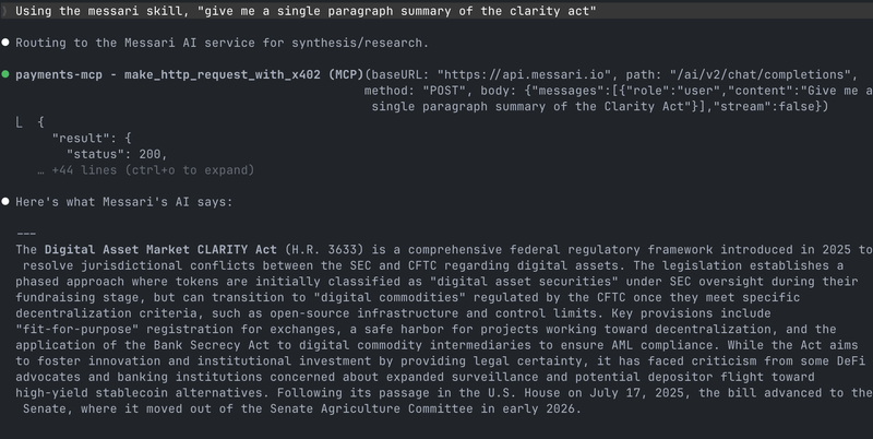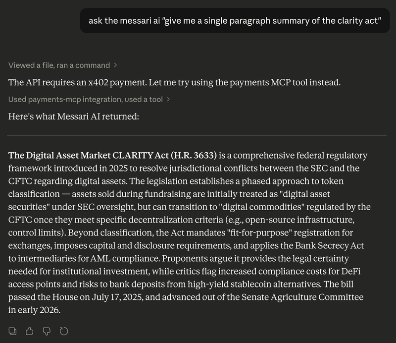 This imaginative and prescient is starting to materialize via our x402 launch, which permits brokers to question Messari for market intelligence and generate an institutional‑high quality crypto briefing.