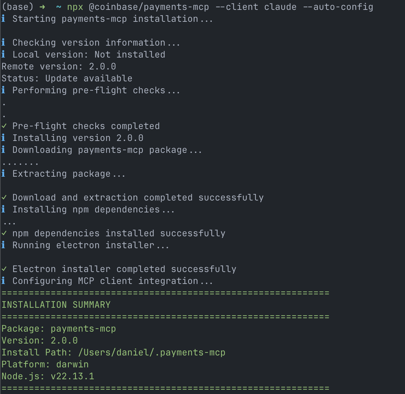 npx @coinbase/payments-mcp@newest --client claude --auto-config